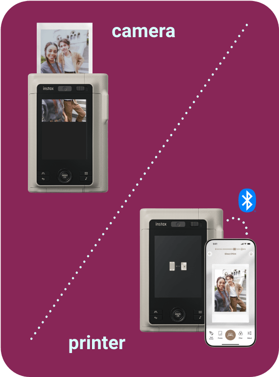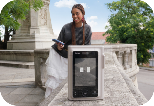 instax™カメラ史上初のセルフィーカメラを搭載。セルフィーが撮りやすくなり、大切な人との特別な一枚を簡単に撮影できます。