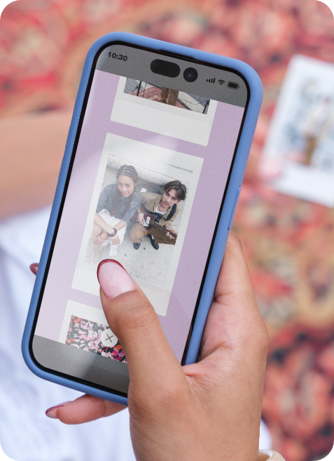 撮影した画像からお気に入りの1枚を選んでプリント。スマホ内の画像を選んでチェキプリント™にすることも可能です。
