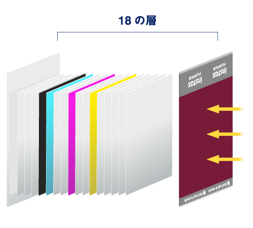 チェキ™のフィルムには、銀塩写真が現像されプリントが出来上がるまでの仕組みがぎゅっと詰め込まれています。