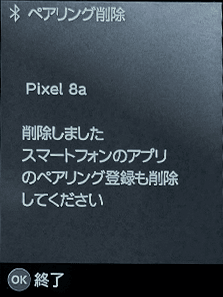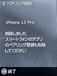 ⇒ 「ペアリング削除」が選択できない場合は操作なし。 -