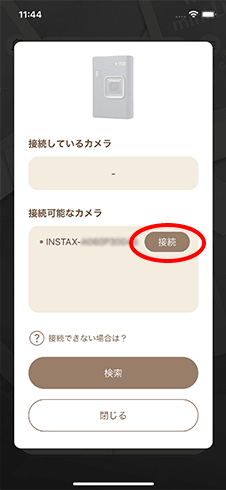 接続するカメラが表示されるので、「instax mini LiPlay+™」を選択してください。