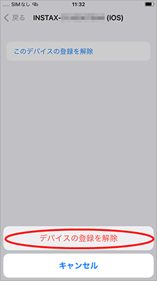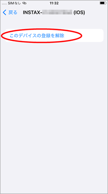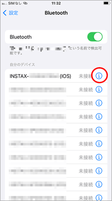 登録済デバイスに「INSTAX-XXXXXX(iOS)」がある場合、該当デバイスの(i)マークをタップしてください。